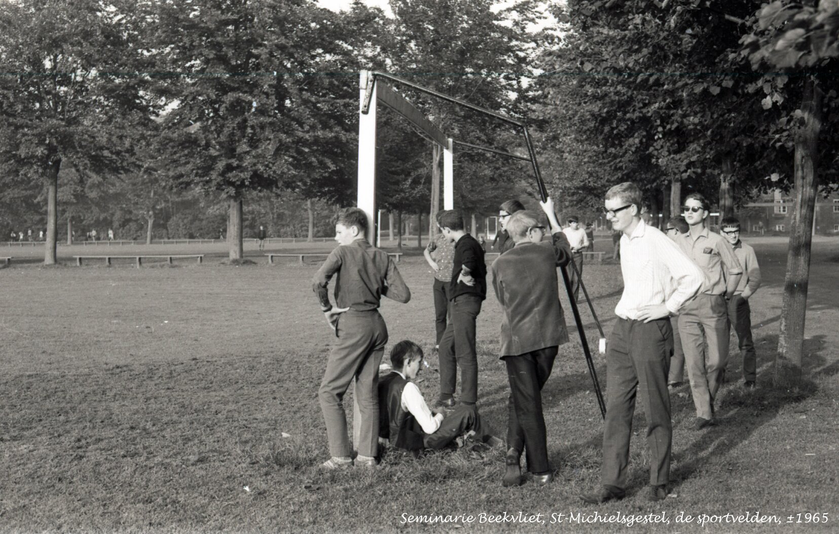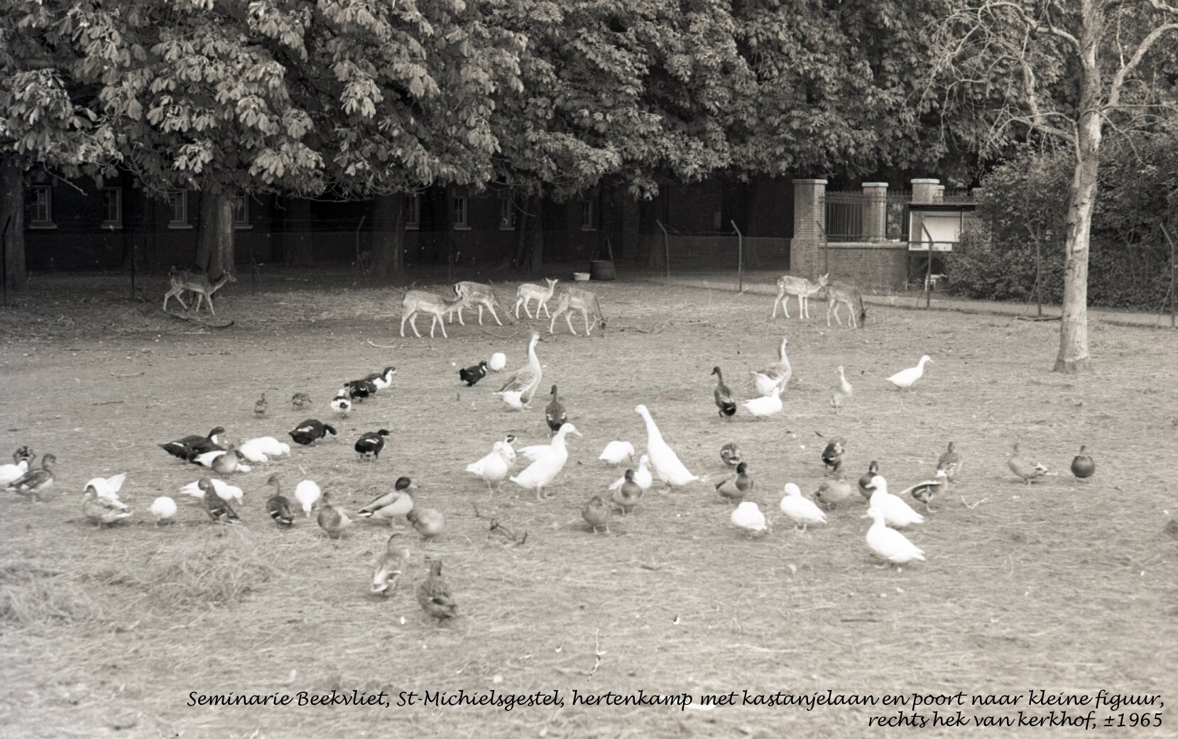 Leerlingen en hertenkamp buiten Beekvliet