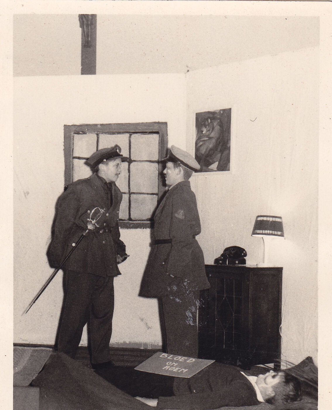 Skelterrace, kamp, voetbal, etc, waaronder klas 3 Gymnasium Beekvliet viering Julius Caesar