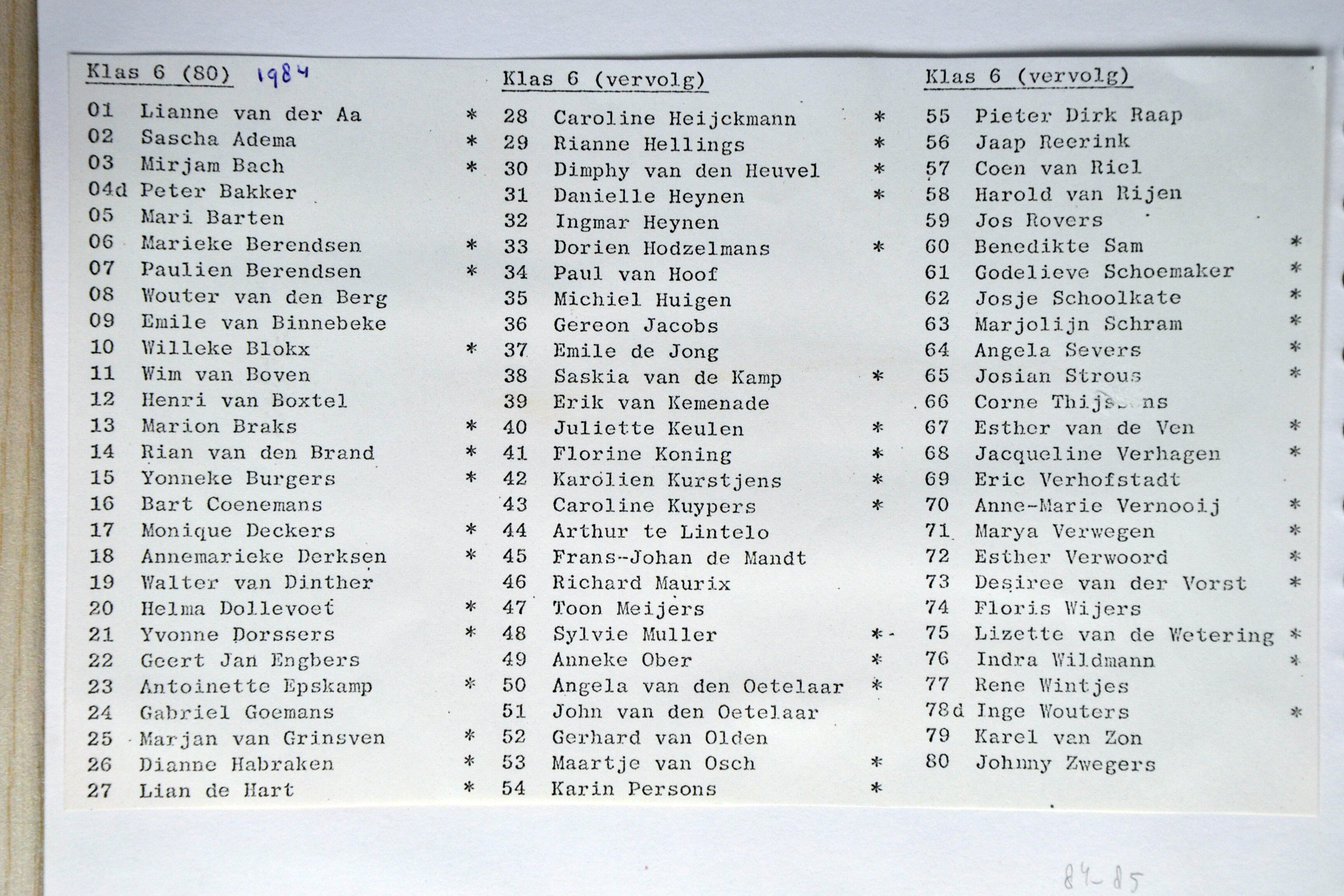 1984 Klassenfoto